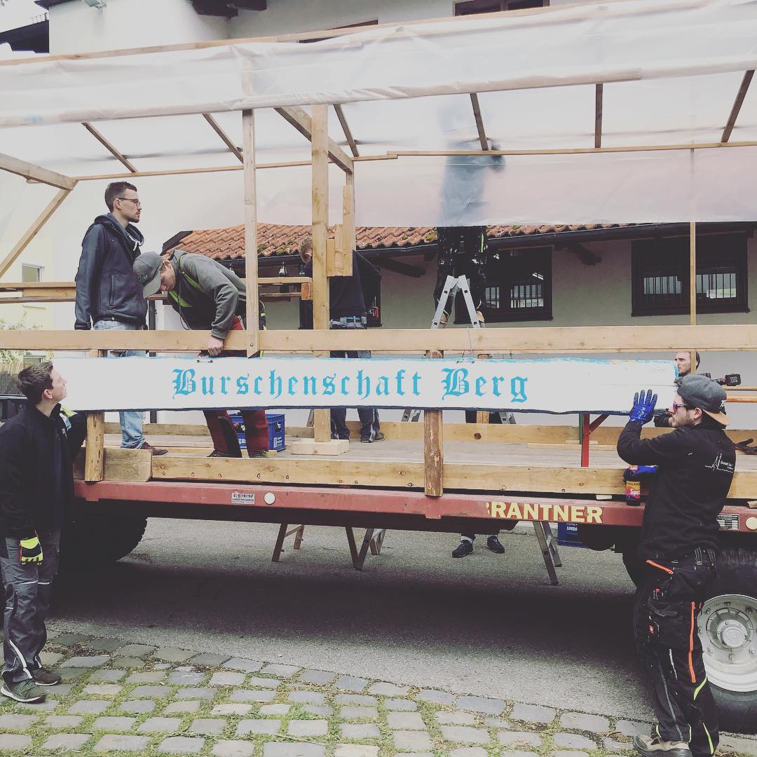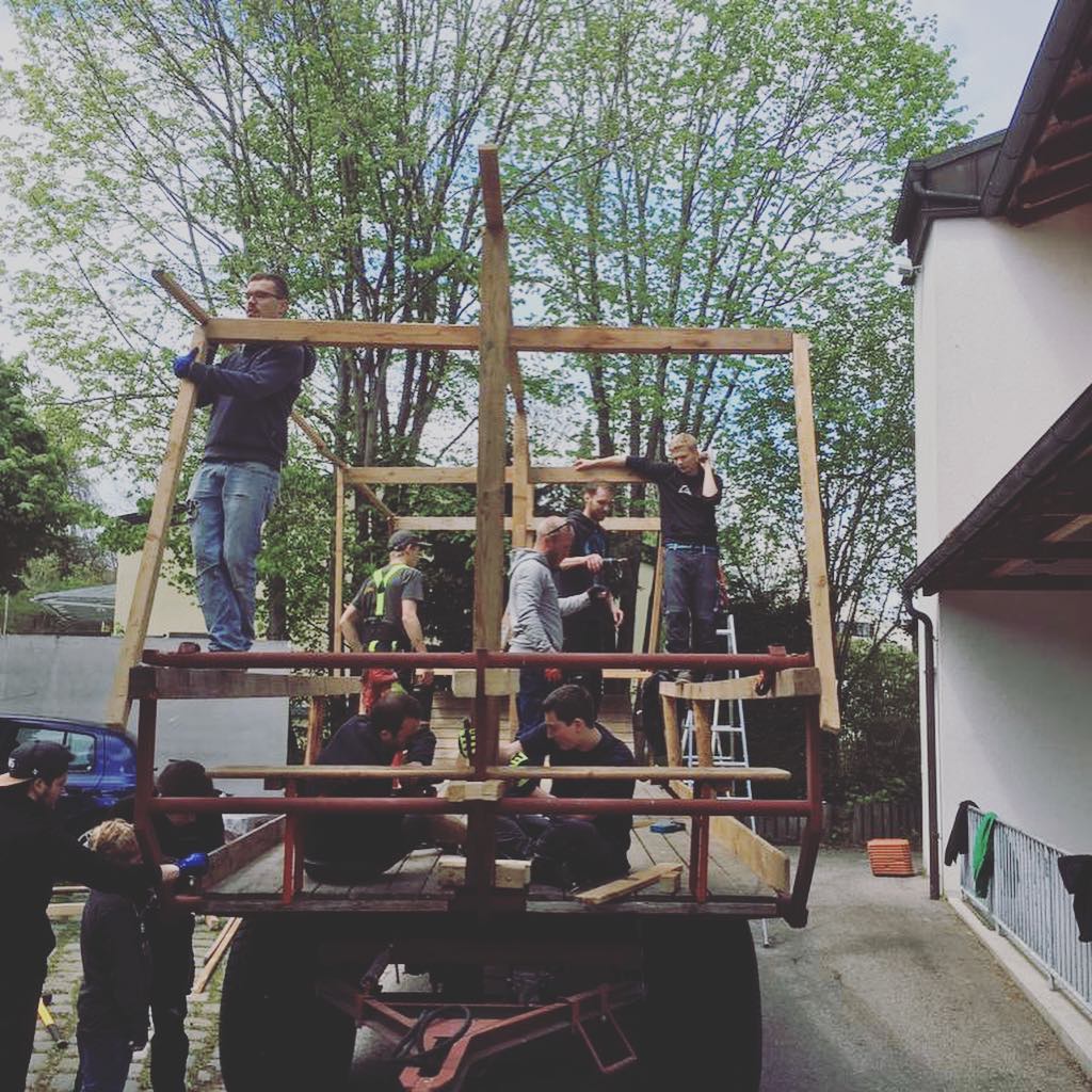 Heute: Die Berger Burschen und Madeln basteln am Mai-Wagen (Photo: Burschenschaft Berg)