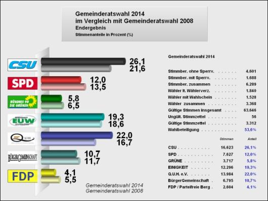 Der Wähler hat entschieden! Nachdem am letzten Freitag im Wahlausschuss noch ein wenig gerungen wurde, liegt inzwischen das offizielle Endergebnis der Wahlen in Berg vor. Zur Erinnerung: Der QUH fehlten exakt 14 (!) Stimmen zum zusätzlichen Gemeinderatsmandat. Bei der Überprüfung eines Teils der ungültigen Stimmen fanden sich erstaunlicherweise doch noch einmal exakt 13 (!!!) Stimmen die dem Wahlgewinner QUH zugeordnet werden konnten. Auch für die SPD wurden noch 5 Stimmen gefunden, sodass der QUH nach dem offiziellen Endergebnis nun exakt 9 Stimmen, also weniger als ein “halber Wähler” zum 5. Mandat gefehlt haben.