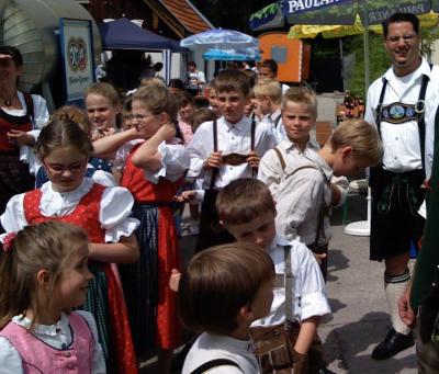 Die 32 Berger Nachwuchsvolkstänzer mit Mahmoud