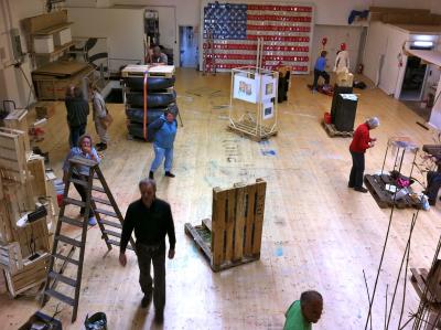 Heute, Samstag, 17 Uhr ist in Mörlbach große Vernissage der Gemeinschaftsausstellung mit dem Thema “Dazwischen”. Jeder Künstler der Ateliertage hatte eine Euro-Palette Platz um ein Werk zum Thema auszustellen. Schon beim Aufbau wurde deutlich: Es bewegt sich was in der Halle. Manche Kunstwerke plätschern, tanzen, singen oder fiepen … manche sind auch ganz still oder laden zur Ruhe ein.