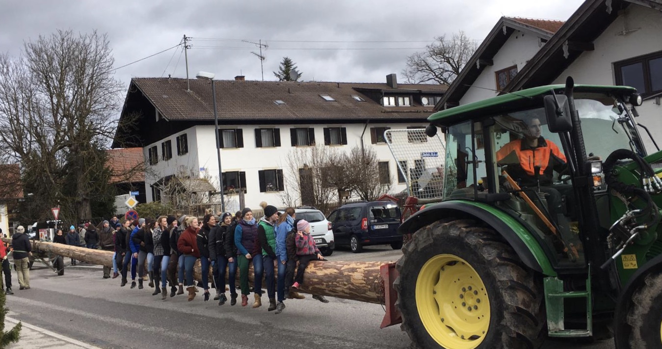 Der Mai(baum) ist kommen – auch wenn “im Laub und im Gras” noch nicht alles grünet, so wie es im Volklied heißt. Die Bachhauser haben heute jedenfalls pünktlich ihren Baum eingefahren.