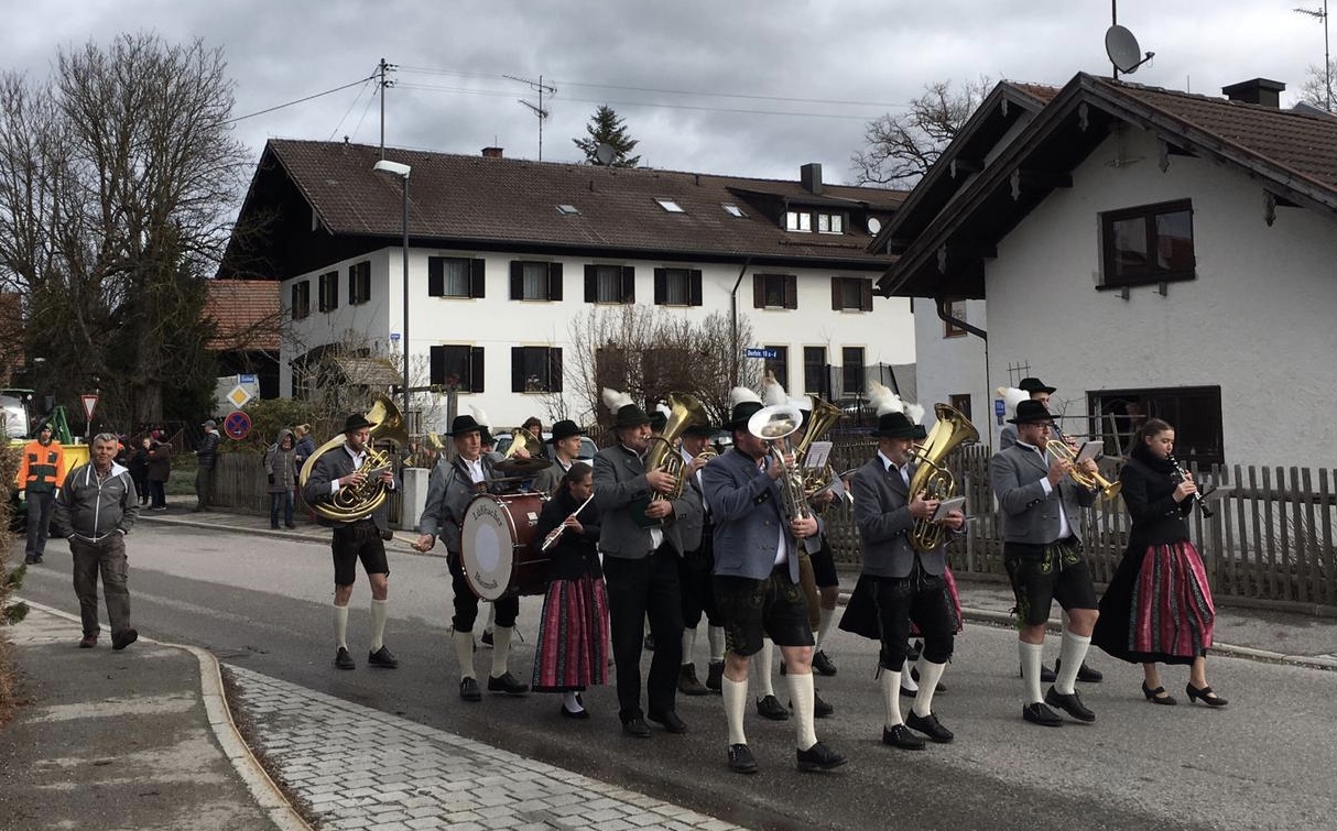 Die Lüßbacher Blasmusik begleitete den Zug musikalisch. Am Abend wird dann die Wachhütte in Betrieb genommen. Bis zum 1. Mai wird das Prachtstück dann in voller Pracht aufgestellt sein. Um 13 Uhr geht es am Maibaum los, danach wird im Festzelt gefeiert. Nachmittags spielt wieder die Lüßbacher Blasmusik, am Abend steht die Partyband “Allgäu Power” auf der Bühne.