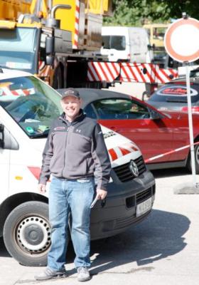 Was zeigt Andi Gröber, Inhaber des Gasthofs zur Post in Aufkirchen, da den Ladenbesitzern von gegenüber?