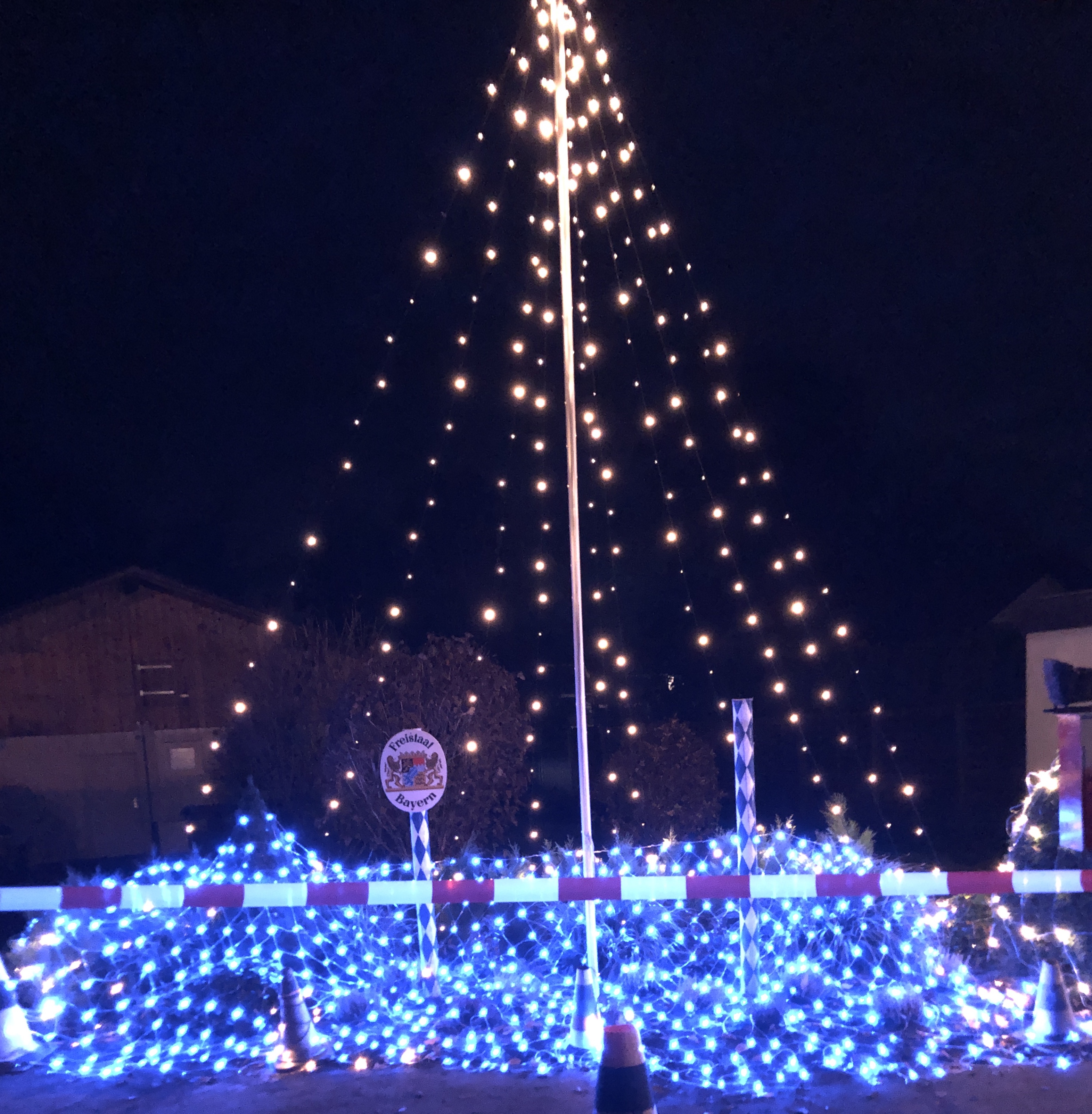 Und damit es auch alle finden, weist Robert “Stego” Wegscheider vor dem Parkplatz mit seiner Lichtinstallation wieder den Weg …