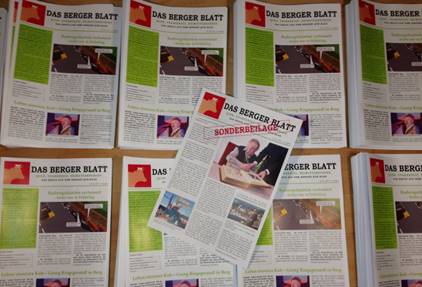 Heute, Donnerstag ist die 2. Ausgabe von DAS BERGER BLATT erschienen. Sie liegt ab sofort in ausgewählten Geschäften und Wirtschaften in der Gemeinde sowie in den 10 (d.h. mittlerweile 9) QUH-Kästen im Gemeindegebiet aus.