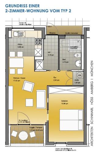 Den Flyer kann man sich bei der Gemeinde abholen oder hier herunterladen. In der Broschüre werden die geplanten Leistungen des Ökumenischen Kranken- und Altenpflegevereins (Grundleistungen wie Hausnotruf, 24h-Sicherheitsservice, Beratung etc. sowie die Vermittlung von Wahlleistungen wie Einkaufsdienst, Krankengymnastik, therapeutischer Versorgung) erläutert sowie beispielhaft die Kosten aufgelistet. In der billigsten Variante (Einkommensstufe 1 bis ca. 13.300 €/Jahr) muß ein Mieter, eine Mieterin mit 416,60 € Miete (incl. Tiefgaragenplatz) und ca 50-70 € für den Betreuungsvertrag rechnen. Die Wohnung dafür könnte so aussehen: