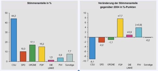 Desaströs endete für die SPD der Eurowahltag. Im Landkreis fiel sie sogar hinter die Grünen und die FDP zurück und ist nur noch viertstärkste Fraktion. Die CSU schaffte bundesweit die 5%-Hürde. Die einzig wirkliche Überraschung gab es in Schweden. Die “Piratenpartei”, die sich aus Solidarität nach dem Prozeß gegen das Internetportal “The Pirate Bay”, das kostenlosen Zugang zu urheberrechtlich geschützten Musiken, Filmen, Programmen bietet, gegründet hat, bekam auf Anhieb 7,4% und wird somit ins Europaparlament einziehen.