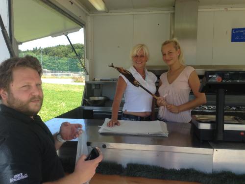 Die köstlichen Steckerlfische können auch unter 0174-2483106 vorbestellt werden.