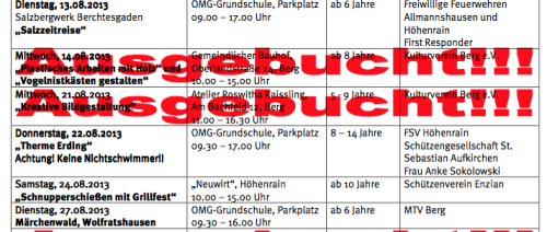 Wie jedes Jahr bieten die Vereine in der Gemeinde Berg ein Kinder- und Jugendferienprogramm. Vor allem Kreativ- und Sporthighlights sind allerdings jetzt schon ausgebucht. Für einen Besuch im Wikingerdorf am Walchensee, des Hochseildgartens am Ammersee, für Kinderyoga Töpfer, Nistkästen gestalten und Tennisschnuppern kann man sich nicht mehr anmelden.