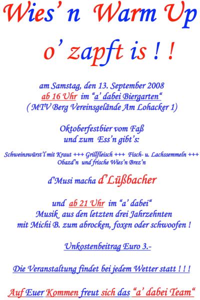 Nicht vergessen – Fest Nummer 3 an diesem Wochenende, der Berger Wies’n Warm-up im “a’dabei”: