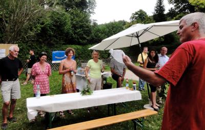 Die STAdtradler konnten mit der heutigen, liebevoll gestalteten Abschlussfeier einen Erfolg vermelden. Uwe Kläner, der gemeinsam mit Peter Moritz die Organisation übernommen hatte, hielt eine kleine Einführung. Die beiden freuten sich über alle Besucher, die sich trotz der drohenden Regenwolken eingefunden hatten. Von den meisten Teams waren Vertreter gekommen. Der Bürgermeister gestand ein, dass die Gemeinde die Teilnahme abgesagt hätte, wären nicht Uwe und Peter eingesprungen.