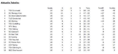 Sie kann nun auf Tabellenplatz 7 der Bezirksliga Süd in die Winterpause gehen. 27 Punkte wurden in der Hinrunde erspielt.