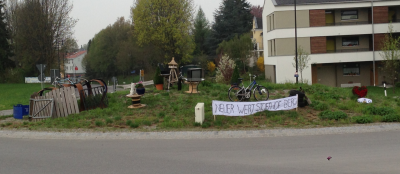 In der gestrigen Freinacht wurde der Berger Kreisel – von vielen “G”reisel genannt – kurzerhand zum Wertstoffhof erklärt.