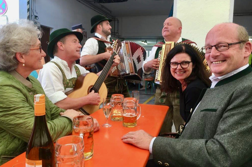 Die “First Lady” von Berg, 3 Musikanten, die Dritte Bürgermeisterin Elke Link (QUH) und Erster Bürgermeister Monn (EUW) (vlnr)