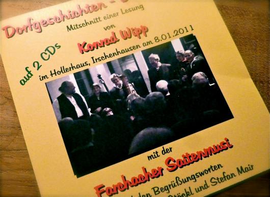 Auf der CD: “Dorfgeschichten – Dorfgesichter”, die der Mair Steffe vom Assenhauser Hof aufgeschrieben hat. Auf der Doppel-CD (für 12 € erhältlich im Hofladen bzw. der Käserei, Mittwoch bzw. Samstag Vormittag) findet sich der Mitschnitt einer Lesung im Hollerhaus in Irschenhausen – vorgelesen von Konrad Wipp, die Musik spielte die Farchacher Saitenmusi.