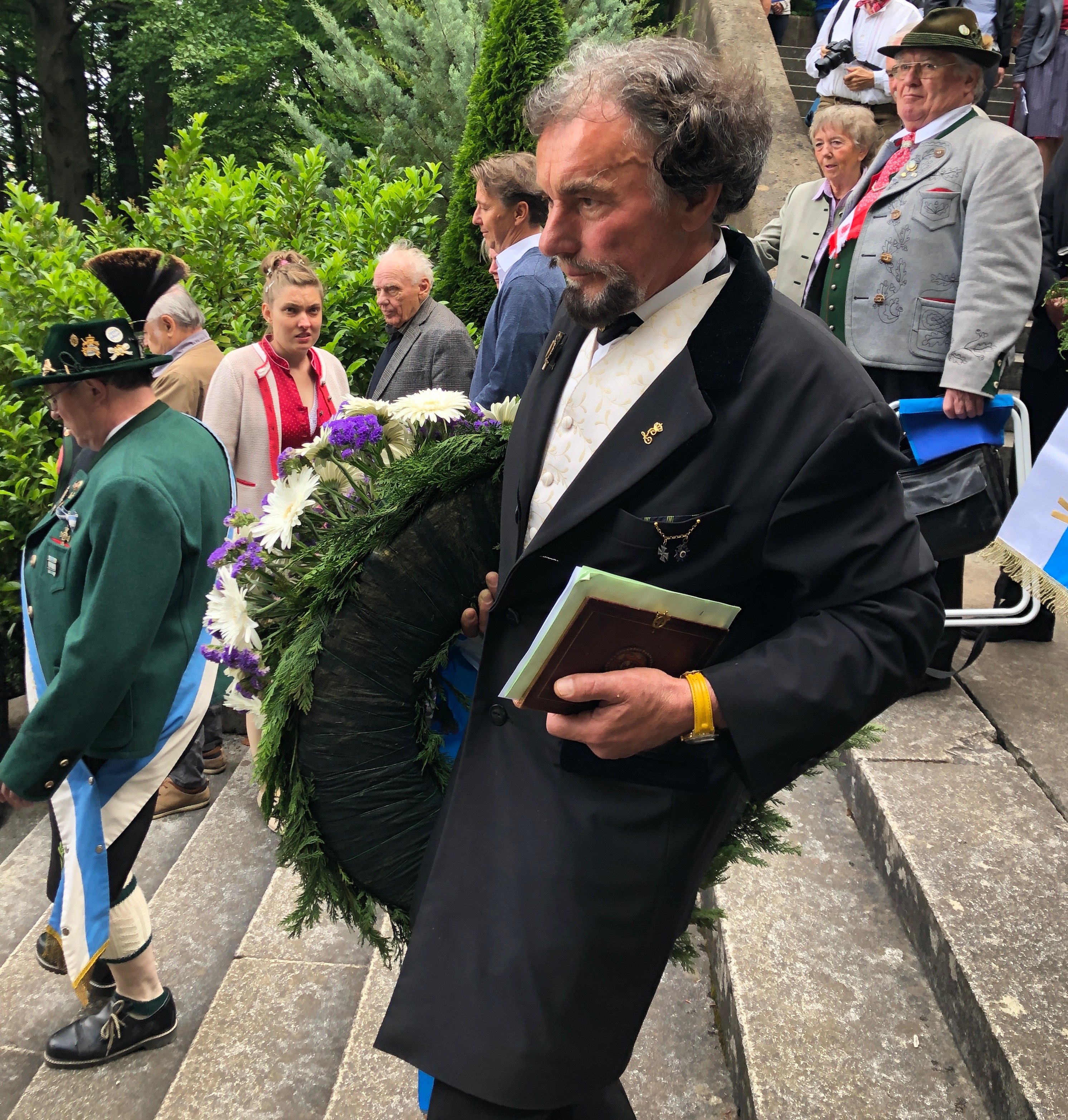 Nicht fehlen durfte natürlich Vertreter aus Berg. Der Trachtenverein König Ludwig “Stamm” Schloß Berg schickte eine Fahnenabordnung, Zweiter Bürgermeister Andreas Hlavaty kam als Repräsentant der Gemeinde Berg, Dr. Peter Gauweiler ist zuverlässiger Stammgast. Für das Haus Wittelsbach waren Prinz Christoph von Bayern und seine Ehefrau Gudila anwesend.