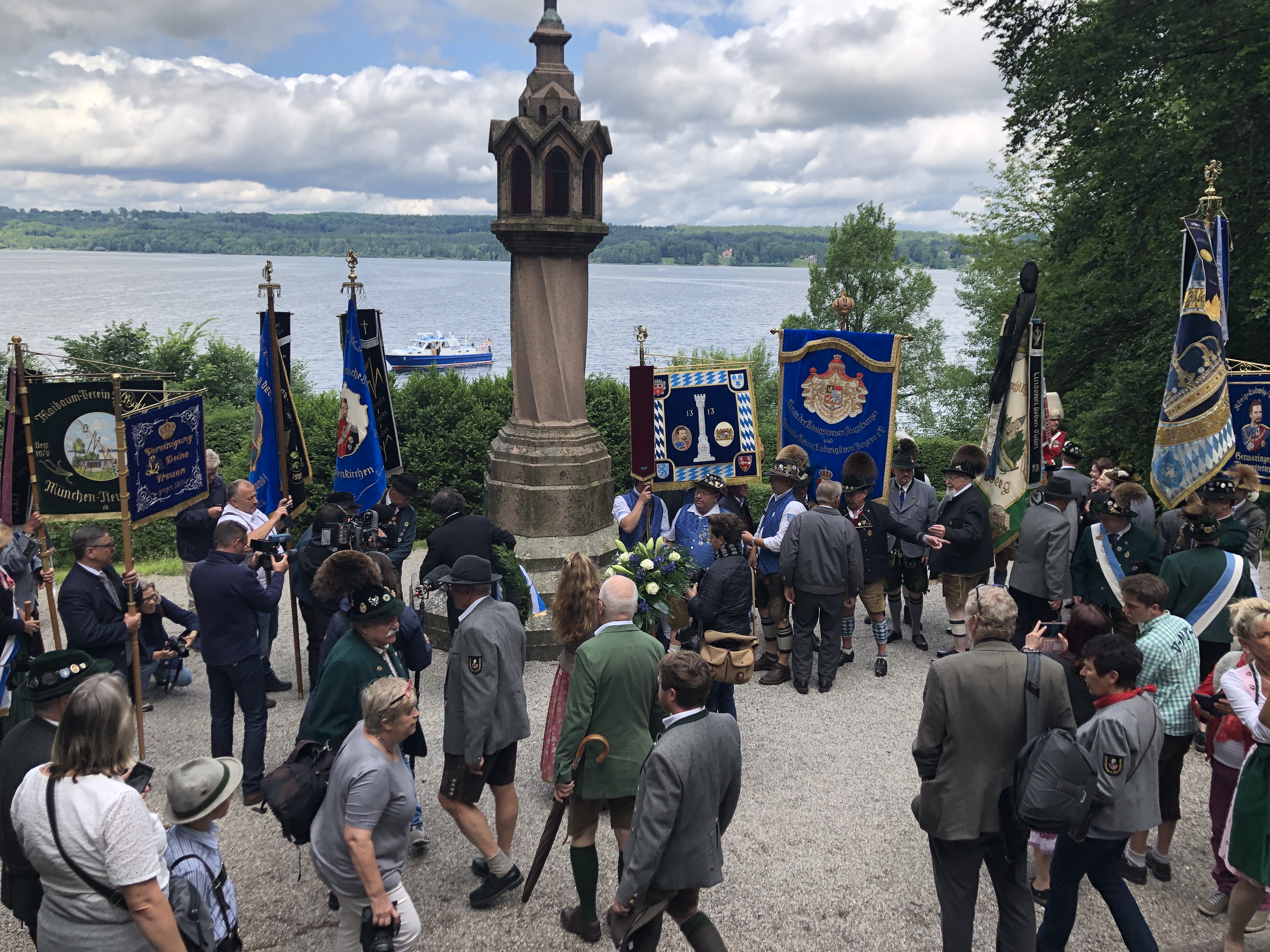 Es war wieder soweit: Bis aus Holland kamen König-Ludwig-Fans, Königstreue und Schaulustige, um der Veranstaltung zum 133. Todestag von König Ludwig beizuwohnen. Pater Virgil Hickl OSB aus Ettal hielt die Gedenkmesse, die Berger Blechbläser sorgten für Musik.