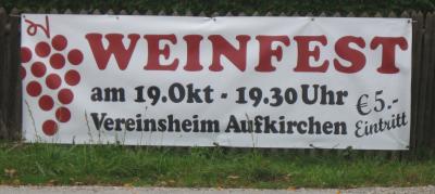 Statt Kirchweih lädt der MTV – wie gemeldet – am Samstag von 16-19 Uhr zur Kinder-Halloween-Party und im Aufkirchner Vereinsheim kommt es abends zum traditionellen “Weinfest”. Die Vereine laden zu Wein, Brotzeit und Tanz mit der Bachhauser Blasmusik. Der Eintritt kostet 5 €, für das Gemeindegebiet wird – grandiose Idee – ein Heimfahrservice gestellt.
