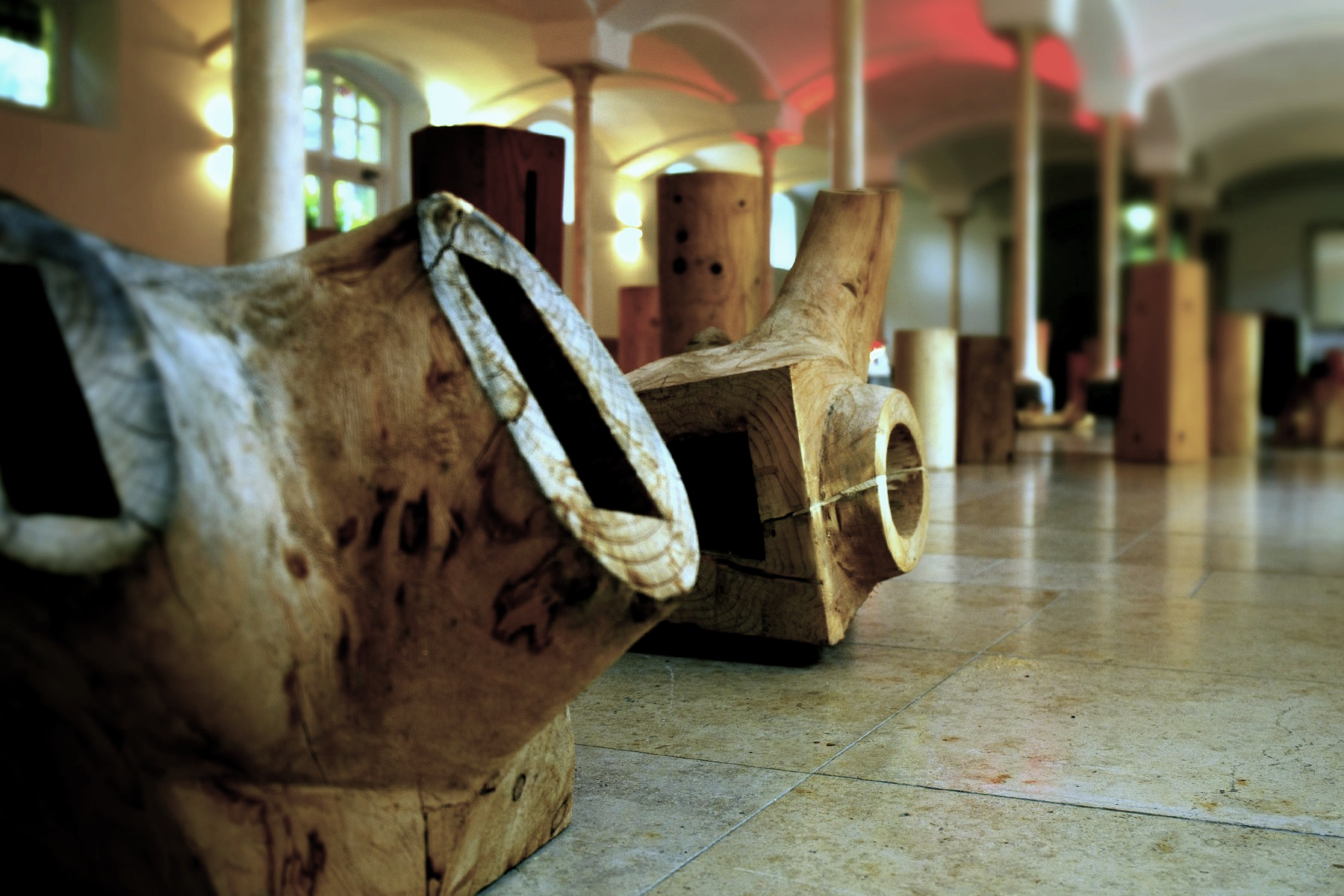 Große Künstler macht es aus, dass man ihre Werke sofort erkennt: So ist es mit den Holzskulpturen von Gerd Jäger. Charakteristisch für den “unterschätztesten Künstler der Region” (SZ) waren die sanften Formen seiner abstrakten Holzskulpturen, die außen oft die natürliche Form des Holzes behalten haben, in deren Innerem sich aber stets ein charakteristisches Loch befindet, das die unterschiedlichsten abstrakten Gestalten annehmen kann. Auf die Frage, wieso er seine Skulpturen aushöhle, antwortete Gerd einmal verschmitzt, dass er das schwere Holz sonst nicht mehr tragen könne. Tatsächlich besteht so jeder “Jäger” aus zwei Skulpturen: einer äußeren, hölzernen, meist sanft geschwungenen … und eingeschlossen in den Naturstoff das Negativ einer fiktiven Skulptur, eine Lehrstelle, ein Stück vom Nichts, ein dunkles Rätsel … ein Loch.