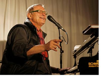 Was Wecker an Graf besonders schätze, so der Liedermacher, sei sein Mut gewesen, in unbequemen Zeiten ein politischer Autor zu sein. Wecker zitiert Graf mit den Worten „Ich mag es lieber lebendig…“ und so hielt es auch Wecker, der in lockerer Folge Graftexte mit eigenen Liedern wie „Revoluzzer“ und „Genug ist nicht Genug“ mischte. Trotz alterbedingter Rückenschmerzen griff Wecker mit vollem Körpereinsatz in die Tasten und wenn er das Publikum auch nicht von den Stühlen riss, so animierte er es doch zum begeisterten Mitmachen.