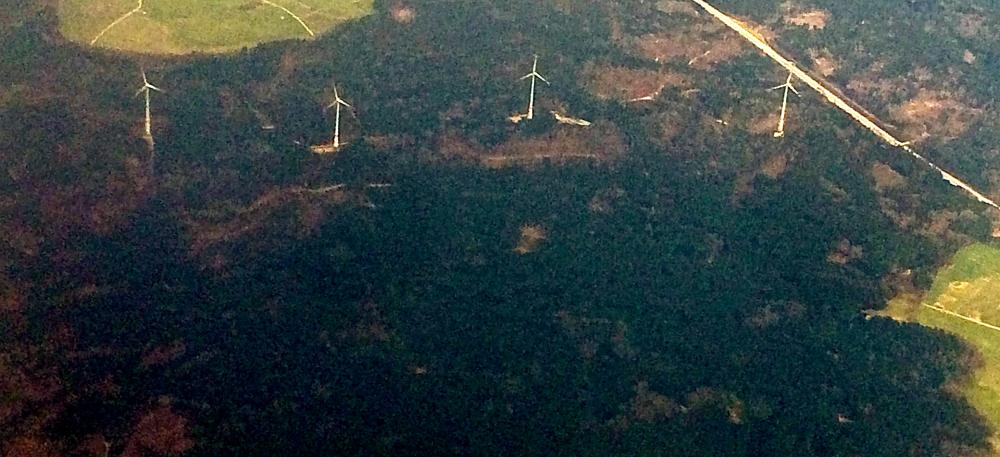 In Jetflughöhe über Berg hinweg: die Windräder winken (Bild zum Vergrößern anklicken)