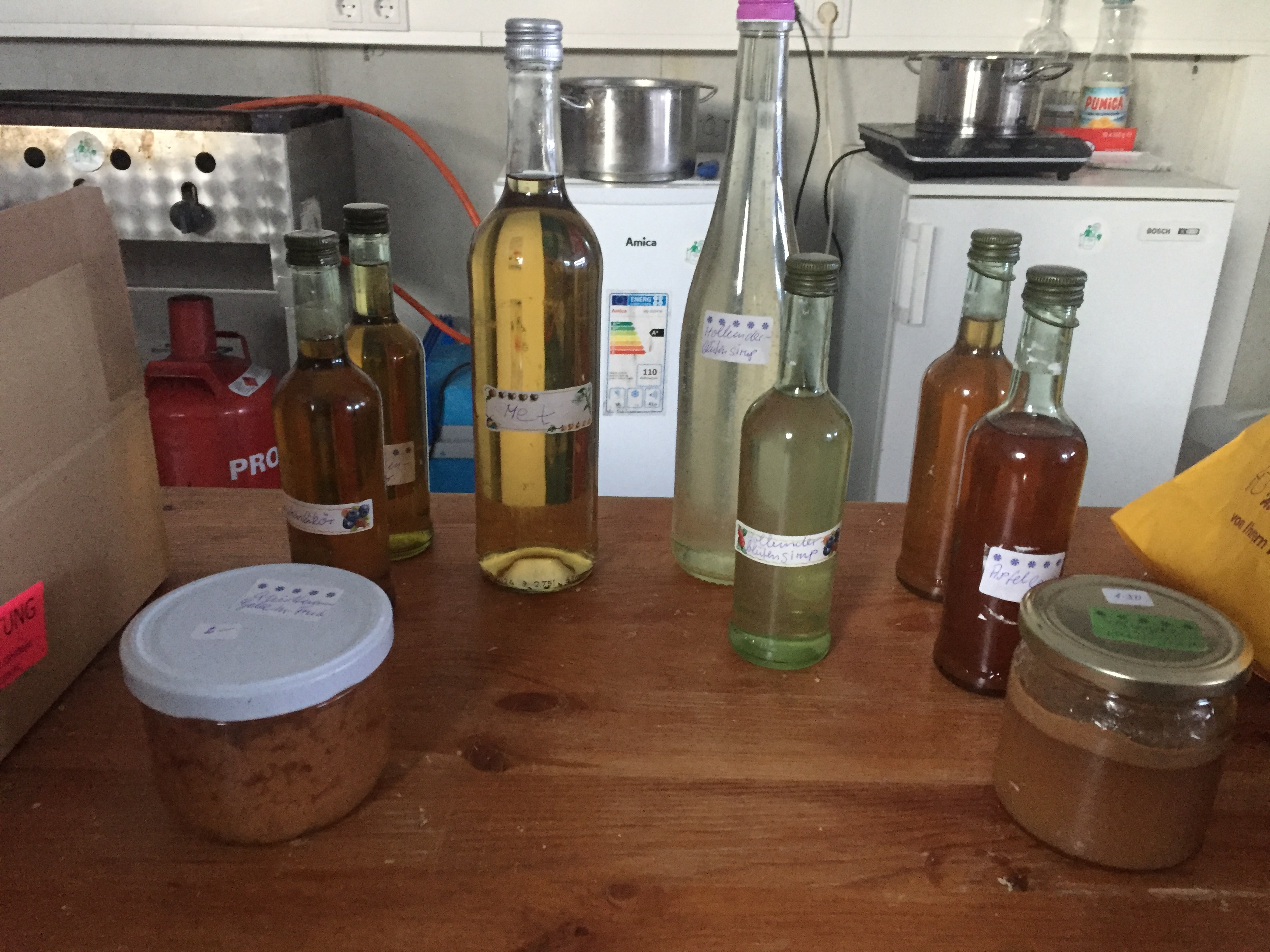 So ganz nebenher stellt Ralf Meier selbst noch mehrere Produkte her – Quittenlikör, Holundersirup, Gelee, Met, Liköre. Und für unsere gefiederten Freunde gibt es selbstgemachte Meisenknödel:
