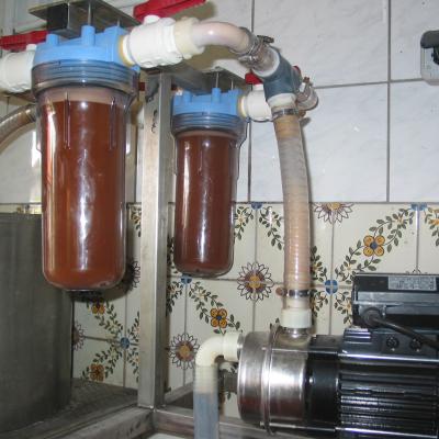 Schritt 8: Weiter geht es per Pumpe in die Filteranlage. Dort werden die gröberen Bestandteile ausgefiltert.