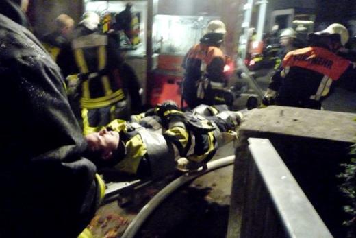 Es wurde aus allen Rohren Wasser gespritzt, selbst die große Leiter wurde ausgefahren (Nein, es ging natürlich alles glatt). Von den Jüngeren wurde die Schatzlgasse abgesperrt und es wurden – ohne Sichtmöglichkeit und mit Atemschutz – unter hoher körperlicher Anstrengung “Schwerverletzte” aus den hintersten Winkeln des Gebäudes gerettet …