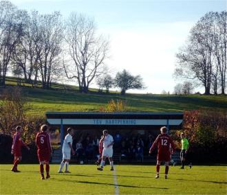 Seitenwechsel im Hartpenninger Stadion vor dessen recht “munterem” Publikum