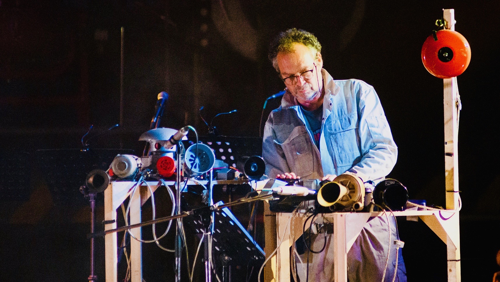 Andreas Ammer an seinem “Instrument”: den Sirenen (Photos ©Gyunai Musaeva/Diaghilev Festival)