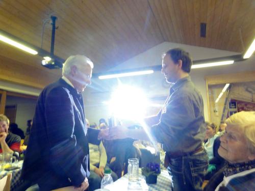 Wie jedes Jahr berichtete zuerst Vereinsvorstand Toni Lidl gewohnt kurzweilig über die Aktivitäten des vergangenen Jahres – Ausflüge (Garmisch), Einweihungen (Allmannshausen), Aktionstag, Jugendwerbung, Traglklettern (Spiel ohne Grenzen, Dorffest). In vier Stunden könnten immer etwa 200 Kinder die Tragl stapeln und erklimmen, aber “wir schaffen nie alle Kinder”. Daher sprach er gleich den Bürgermeister an: “Wir sollten vielleicht mal über eine zweite Drehleiter nachdenken – oder du schaffst ein Karussell an.”
