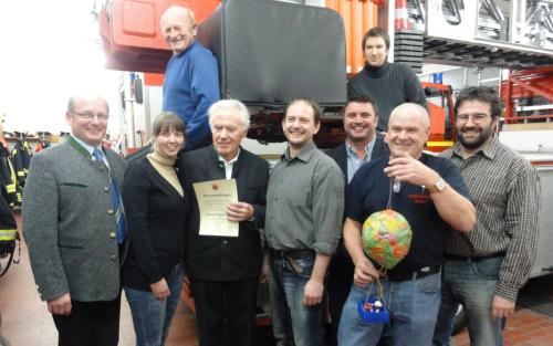 Doch damit nicht genug: Der Vorstand hatte beschlossen, Schorsch Steigenberger zum Ehrenmitglied zu ernennen. Schorsch Steigenberger ist seit 1949 Mitglied der Feuerwehr, 27 Jahre lang war er Kommandant, er wurde vier mal einstimmig gewählt. Er bedankte sich für die geduldige Unterstützung der Kameraden damals, denn er musste sich das Wissen, das heute durch die Ausbildung schon an die Jugend weitergegeben wird, erst langsam aneignen.