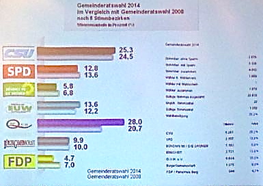 Was sich nicht mehr verändert: starke Gewinne für die QUH, alle anderen Parteien stagnieren. CSU und QUH liegen Kopf an Kopf schon weit vor dem Rest der Parteien. Zusammen besäßen sie derzeit eine absolute Mehrheit im Rat. Es fehlen noch 7 Stimmbezirke, darunter natürlich Höhenrain und die Briefwahlen. Die EUW liegt durchaus noch auf Kurs. Da wird sich noch einiges tun. Am Zugewinn der QUH gibt es wenig Zweifel. Ob das für mehr als 4 Sitze reicht, wird sich zeigen.