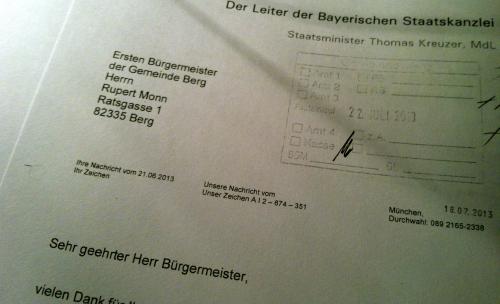 Post aus der Staatskanzlei: erwartetermaßen nichtssagend