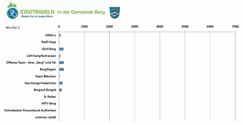 In der ersten Woche überraschte der Newcomer BergZiegen mit einer beeindruckenden Kilometervorlage, ab der zweiten Woche setzten sich die teilnehmerstarken OMGis an die Spitze, immer gefolgt vom Team Radl-Sepp. Auf dem dritten Platz gab es ein fröhliches Wechselspiel zwischen den Teams QUH Berg, LSH Kempfenhausen und dem Offenen Team.