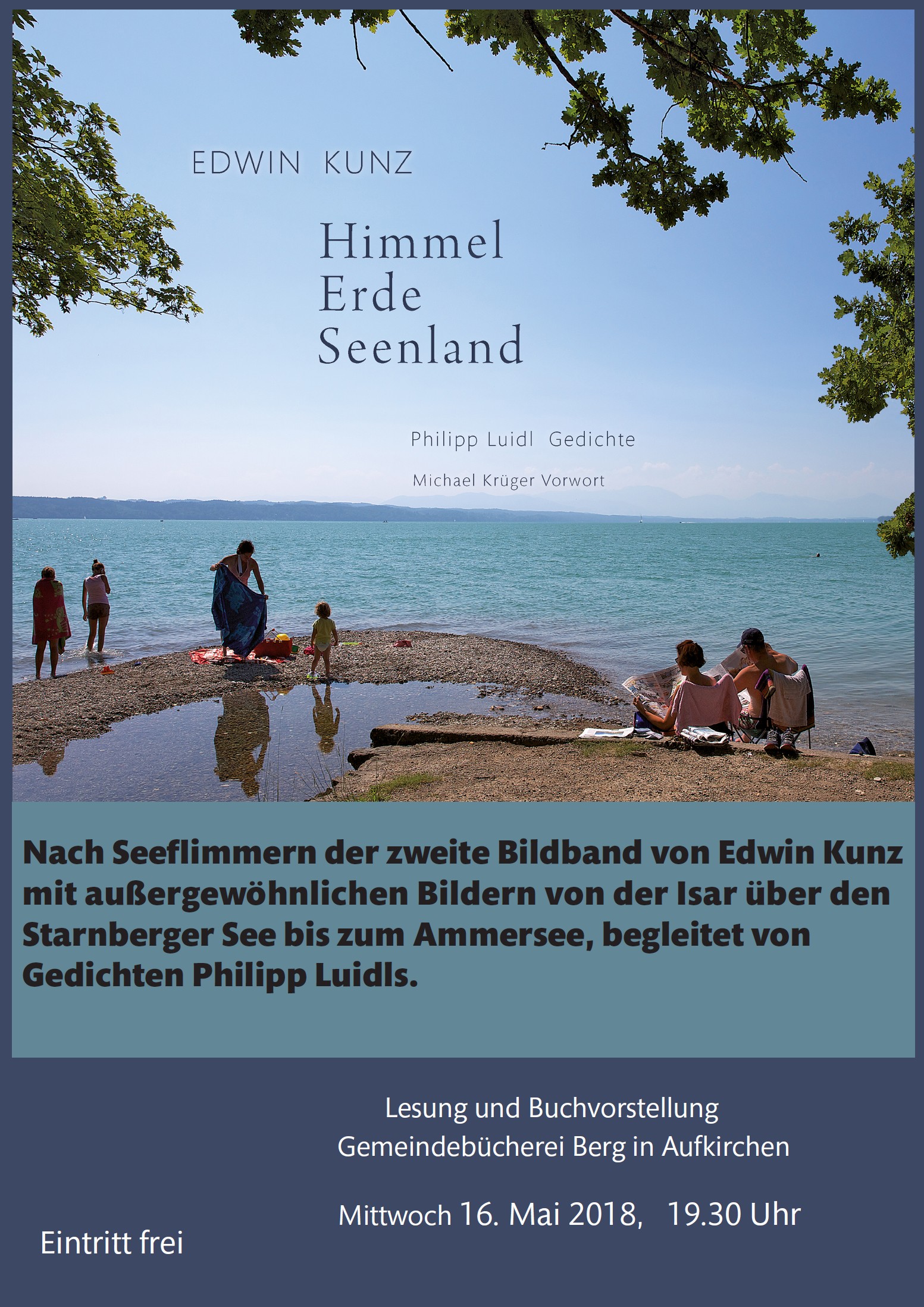 Glücklich die Bewohner einer Gegend, die nicht nur Helden hat, sondern auch Chronisten. Ja, jede Landschaft sollte einen Geschichtsschreiber besitzen. Für Berg ist das gemeinhin Oskar Maria Graf, aber er hat einen modernen Kollegen bekommen: der Photograf Edwin Kunz aus Leoni hat es sich seit einigen Jahren zur Aufgabe gemacht, das Fünf-Seen-Land photographisch zur vermessen und erzielt damit einzigartige Ergebnisse. Er hat einen neuen Bildband vorgelegt: “Himmel Erde Seenland” ist der Titel.