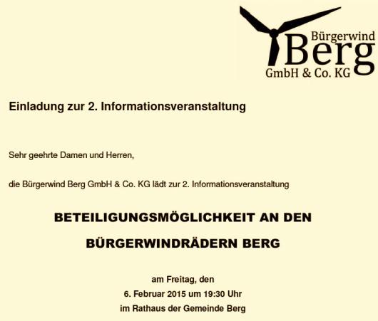Die Tage gibt es wieder mal genügend Gelegenheit, sich über unser eigenartiges Dorf zu wundern, zu freuen und erfreut zu staunen, was hier so alles passiert. Um 19.30 findet heute im Rathaus die zweite Informationsveranstaltung von “Bürgerwind Berg” statt, bei der das Beteiligungsmodell für die Berger Windräder den Bürgern vorgestellt werden soll. 6 Millionen Euro will man einsammeln, gut 5% Rendite werden für die 4 Windräder in Aussicht gestellt. Die Energiewende vor Augen, ein kleines Dorf trotzt der windwendigen Staatskanzlei. H.S. schickt den Wespenbussard los.