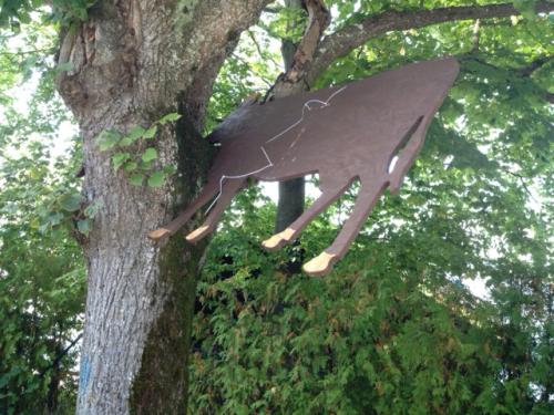 Gestern in der Seestraße: Jemand hatte einer unserer Holz-Qühe Flügel verliehen.
