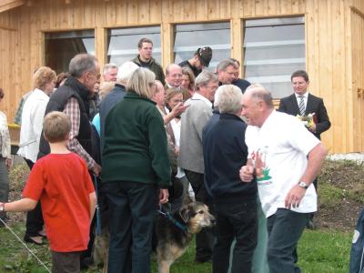 Zwölf Bienenstöcke sollen in dem Haus Platz finden, das auf dem OGBV-Grundstück vor dem Wertstoffhof in Farchach steht. Mit Zelt, Büffet, Holundersekt, einem Bürgermeister, zwei Pfarrern (das Wort “Honig” kommt immerhin 55 mal in der Bibel vor), drei Gemeinderäten und annähernd so vielen Vereinsmitgliedern wie Bienen wurde das Haus gefeiert.