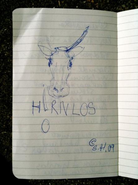 Das Werk und das Wirken der QUH inspiriert mehr und mehr auch die Künstler. Der Ickinger Bildhauer Sebastian Heinsdorff malte uns unlängst diese Kuh ins Notizbuch, mit der Ermahnung, dass Hornlosigkeit zu Hirnlosigkeit führt.