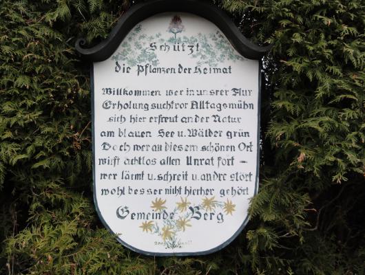 Alte Mahnung, das obige, von nicht-“heimatverbundenen” Thujen im Bestand bedrängte Schild