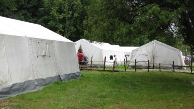 Im Außenbereich: eine Zeltstadt mit eigener Küche