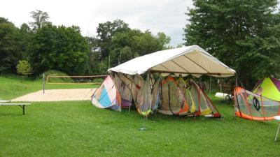 sowie eine Surfschule mit Beachvolleyballplatz und natürlich einem eigenen Badesteg mit Wassersportmöglichkeiten aller Art.