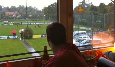 … oben in Bernd’s “A’dabei” verfolgten wegen der sehr “englischen” Wetterverhältnisse die meisten MTV Fans das Bezirksligaspiel gegen den DJK Pasing.