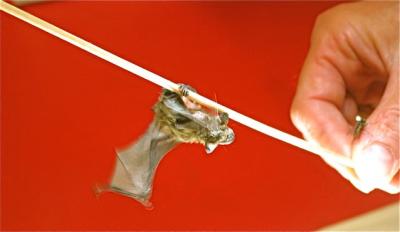 Die Tiere bekommen statt Fledermausmuttermilch eine Mischung aus Katzenmilch, Dosenmilch und Fencheltee aus der Flasche. Sie haben ihr Gewicht schon fast verdoppelt – statt der 3 Gramm bei der Aufnahme vor zwei Wochen wiegen sie bereits 5 Gramm!