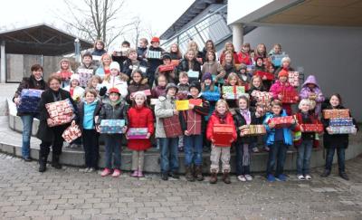 Allein in der Gemeinde Berg wurden 2010 über 200 Päckchen an humedica übergeben. Auch in diesem Jahr wollen die Schulen und Kindergärten der Gemeinde mitwirken.