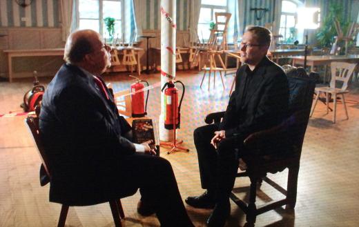 Für die Dreharbeiten anlässlich des Erscheinens seines neuen Buches (ein Krimi, der in einer Münchner Vorstadt spielt) hatte der Berger Regisseur Andreas Ammer den Autor über den Berg herüber in den Saal der Post gebeten. Dort interviewte ihn der aus Köln eingeflogene ARD-Literaturpapst Denis Scheck für die heute ausgestrahlte Folge der ARD-Literatursendung “druckfrisch”.
