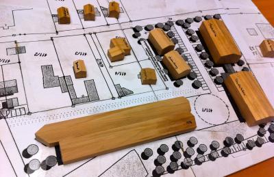 Von einem besorgten Mörlbacher gebautes Modell der neuen Reiser-Hallen (rechts, vorn das bestehende Möki-Gebäude)