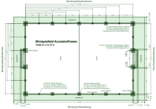 Der MTV muss mit Hilfe der Gemeinde die Erdarbeiten und das Fundament finanzieren, der DFB stiftet dann oberhalb des aufbereiteten Grundstückes alles weitere: ein 20mx13,2m große Spielfeld, Bande, Zaun und Tore.