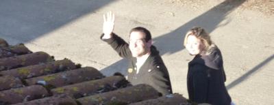 Oberbursch Markus Söllner und Obermadl Clarissa Höbart winken der verschlafenen Nachbarschaft ins Schlafzimmerfenster.